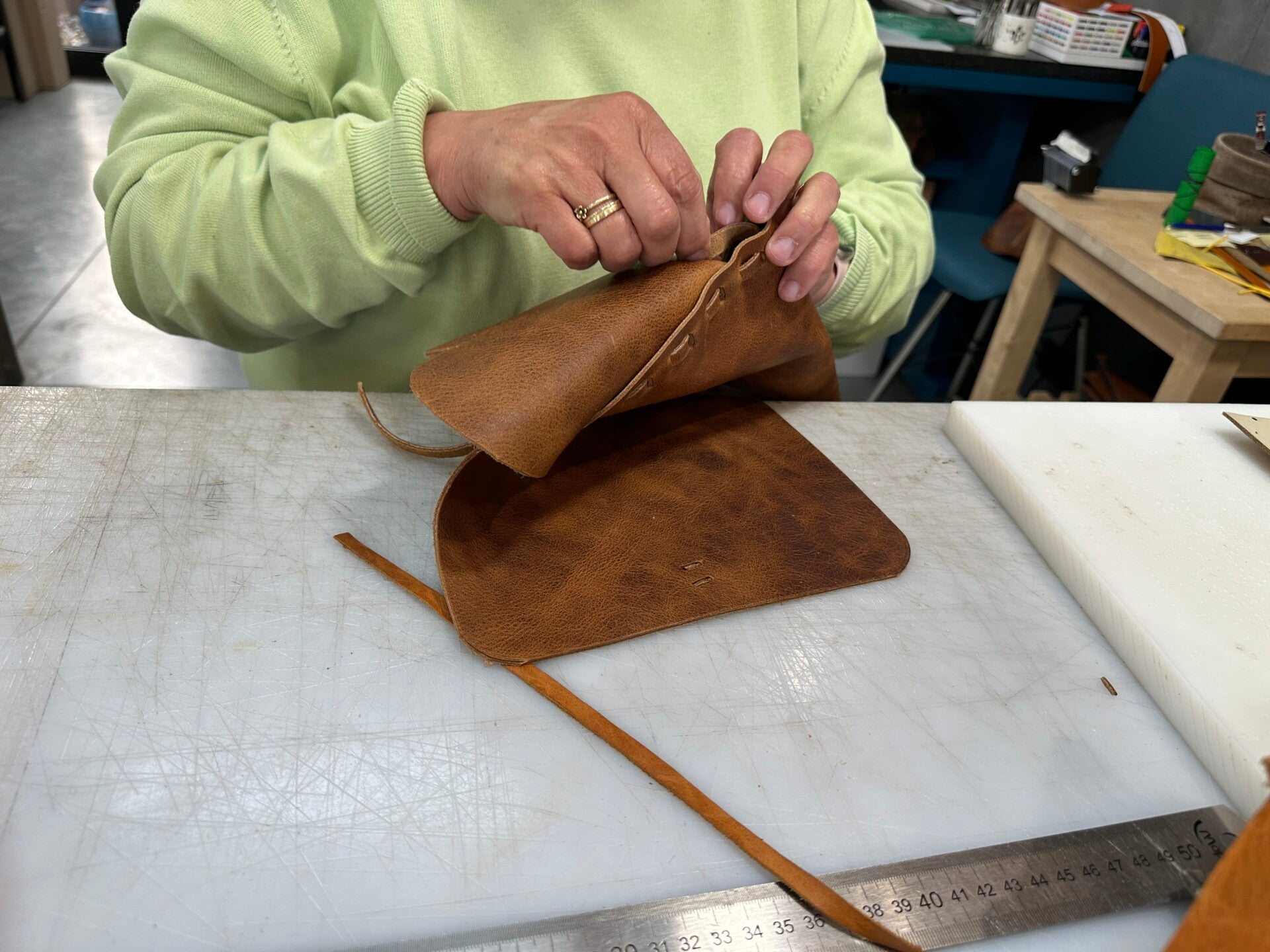 Tijdens deze workshop leer je stap voor stap werken met leder en maak je een lederen doppkit.